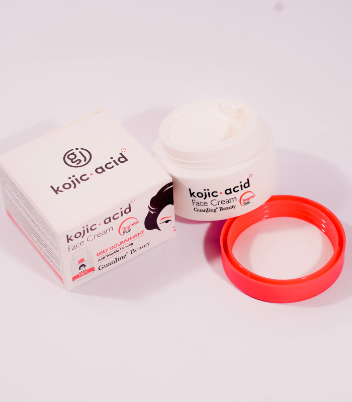 GuanJing Kojic Acid Face Cream is a lightweight, non-greasy formula that brightens skin, reduces dark spots, and improves overall texture. It helps fade acne scars, freckles, and hyperpigmentation while keeping skin moisturized and fresh.